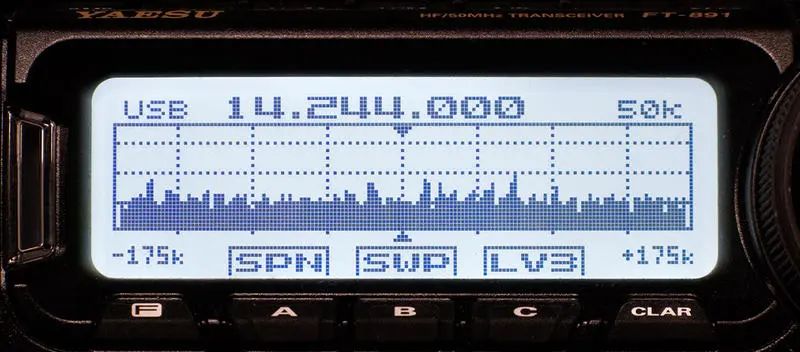 FT-891的频谱功能虽然说不上强大,但依然有一定的实用性,用户可以利用单次扫描获得频谱图以发现附近频率的大信号。单次频谱扫描时间极短,接收大概暂停不到一秒钟,基本不影响语音的收听。不过FT-891的频谱显示对于中等和弱信号显示则不明显,实际找台实用性有限。